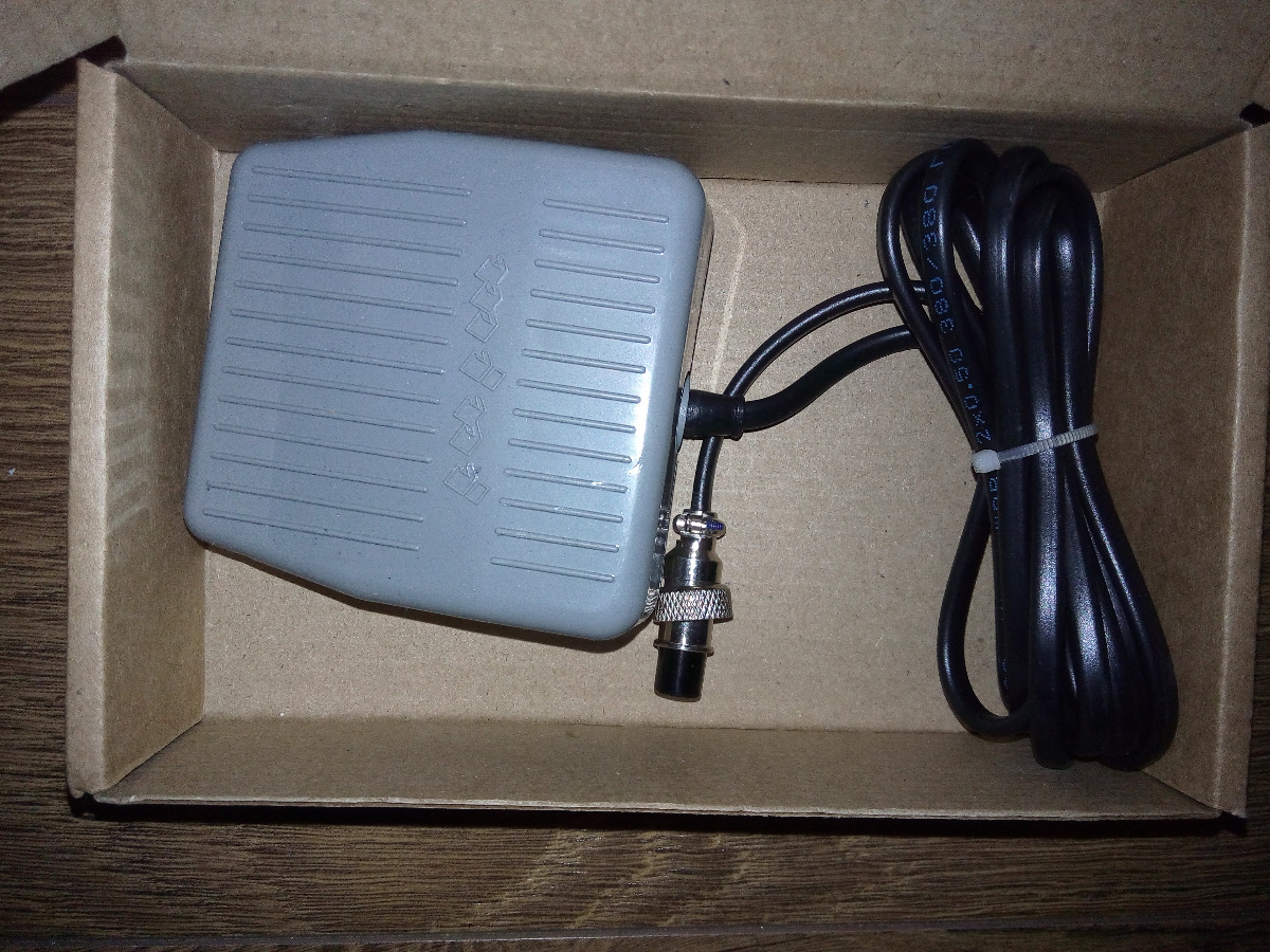 Длина проводов питания - 1,5м. Провод к педали длиной 2м. Педаль на резиновых ножках, по полу не скользит.