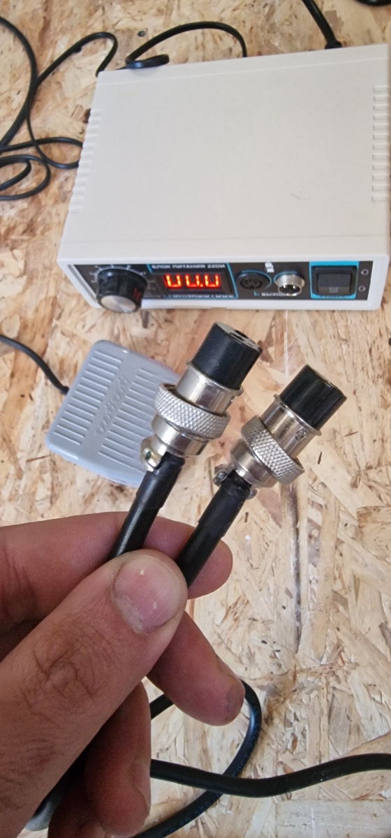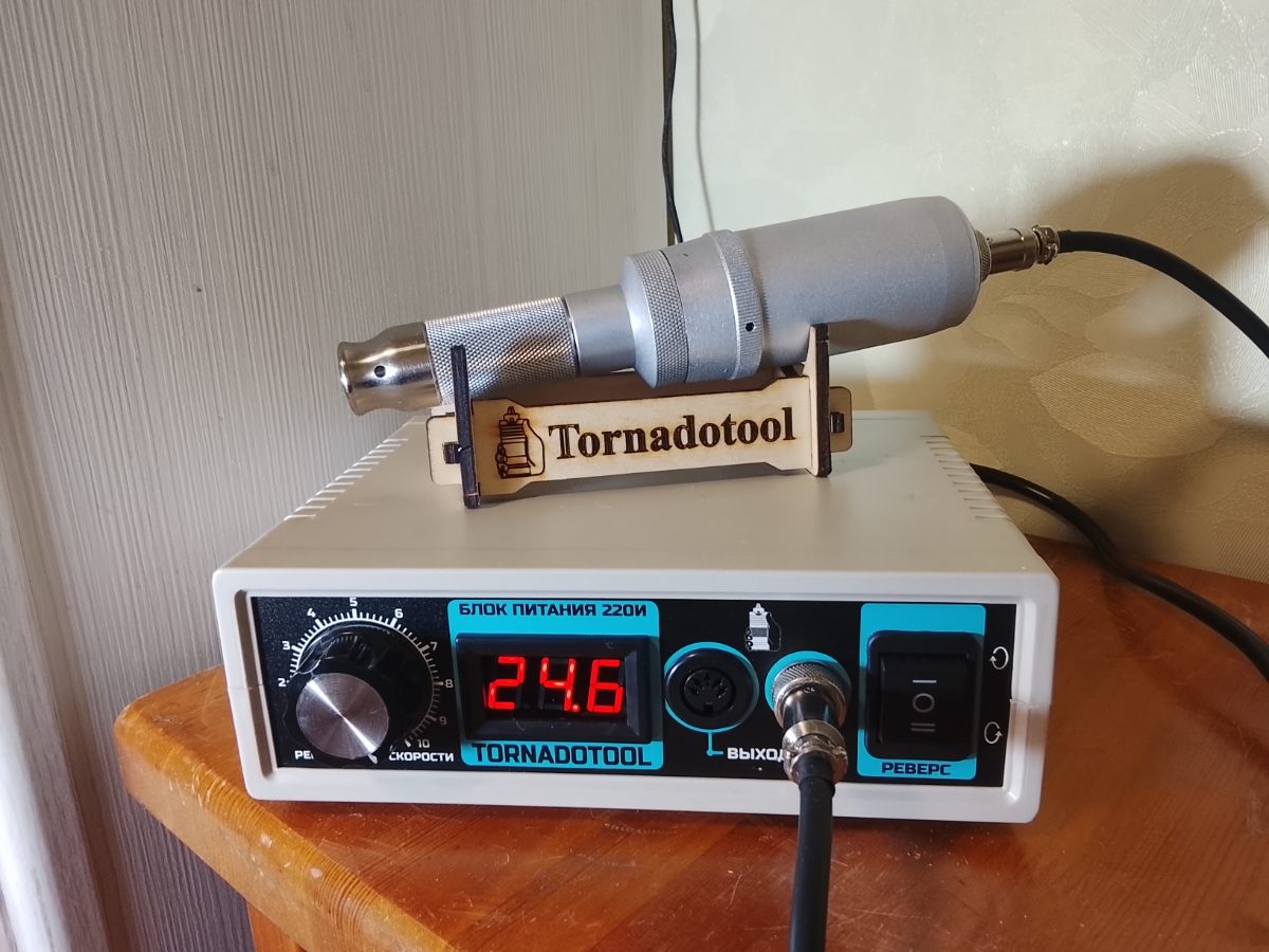 - Импульсный блок питания Tornadotool 220И с плавной регулировкой оборотов, индикатором напряжения, дополнительным входом 5pin и отдельным разъёмом для педали;