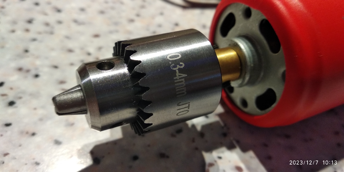 Трехкулачковый патрон зажимает хвостовики с диаметром от 0.3 до 4.5 мм