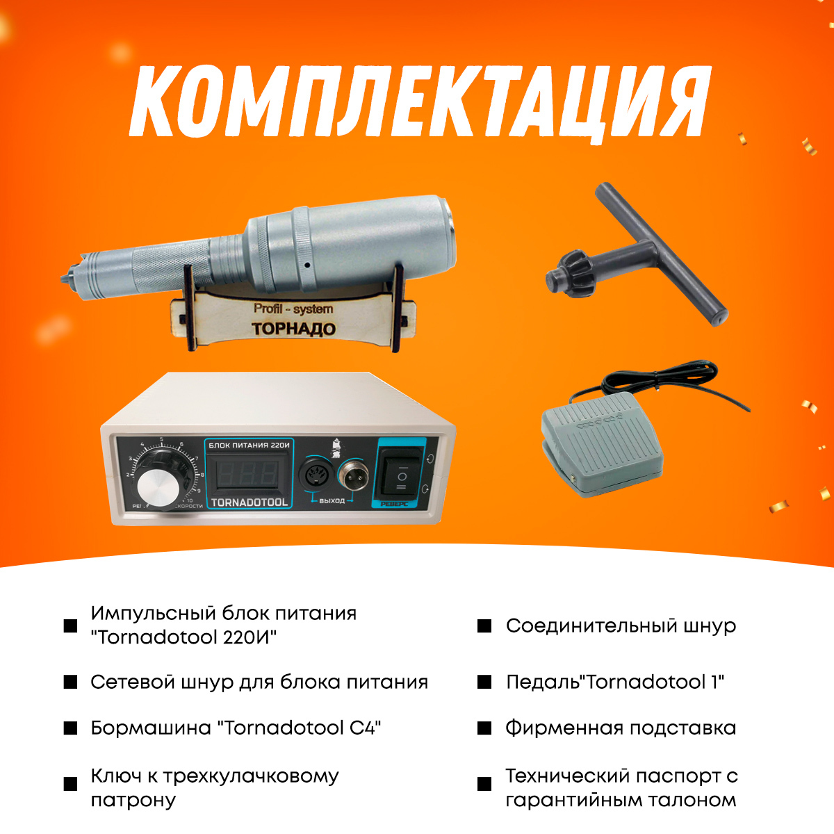 Аккумуляторная бормашина Tornadotool C4/АКБ предназначена для средних и мелких работ: