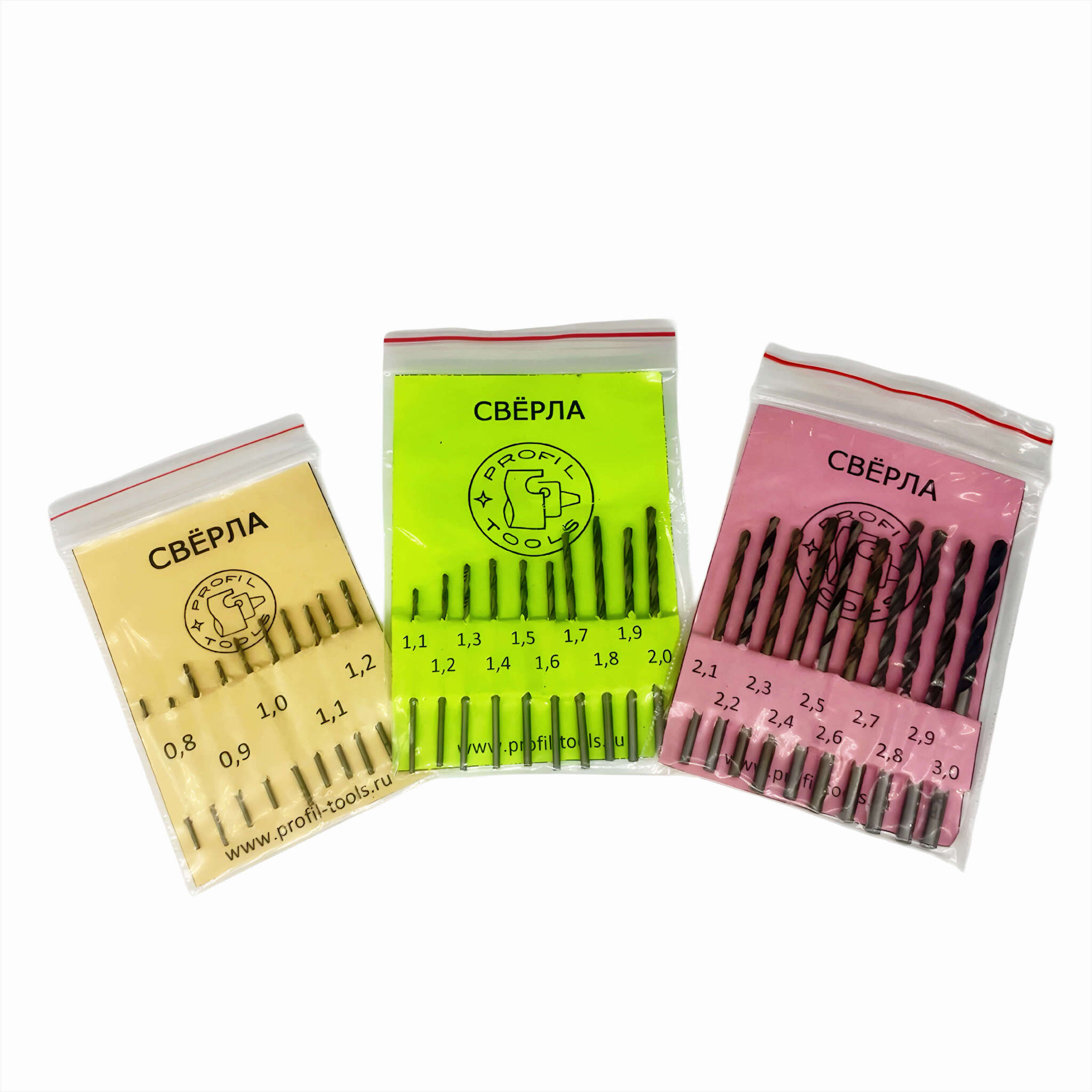 Комплект сверл из трех наборов. Диаметры от 0.8мм до 3.0мм.